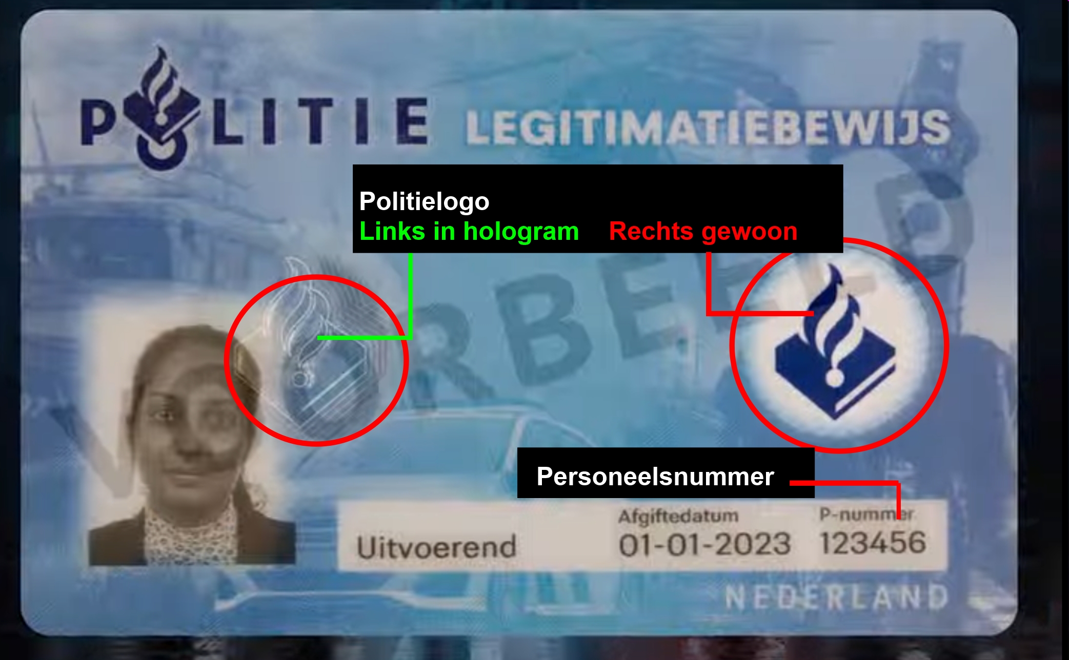 Hieronder zie je echte Politiepas en de kenmerken ervan.