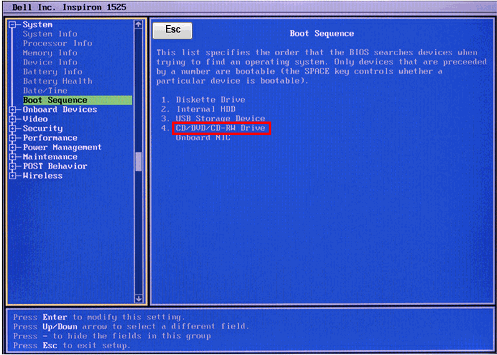 Zoek in het BIOS scherm naar Boot Sequence